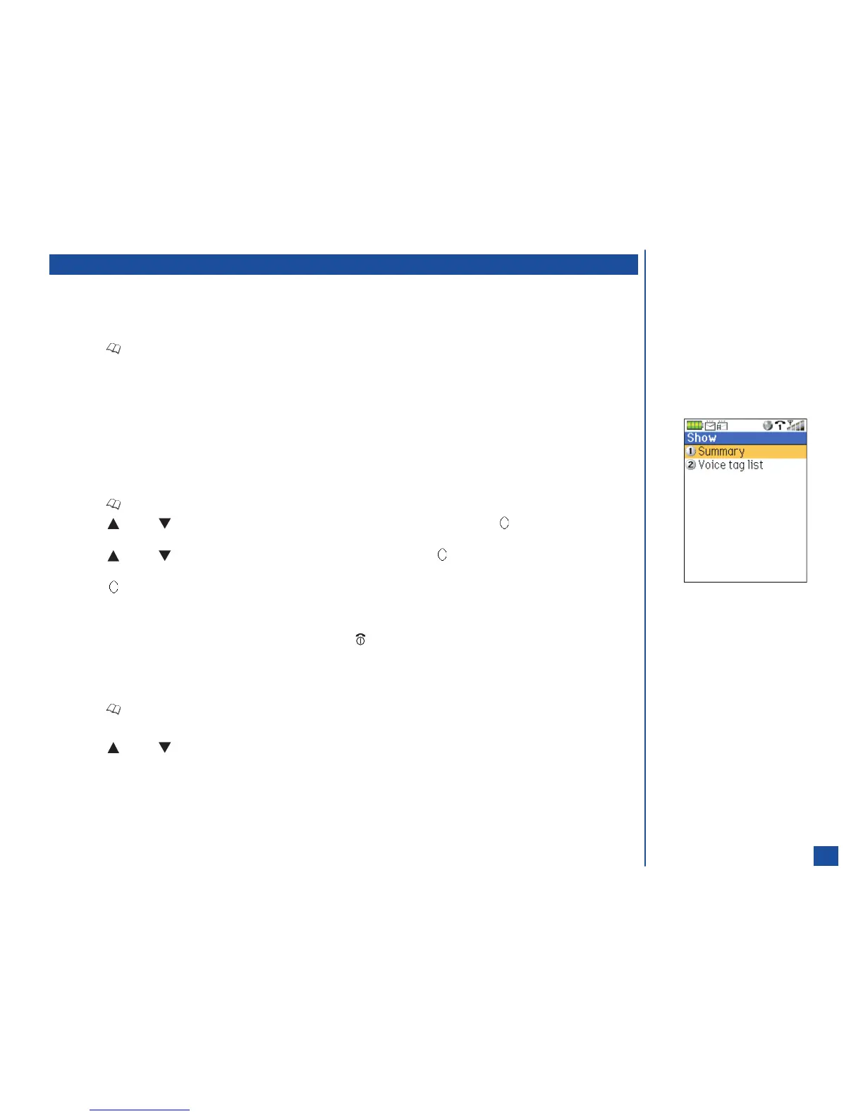 Voice tag list screen or press MENU (Options Menu) and 1 to play the voice tag and return to the voice tag Options menu. Place