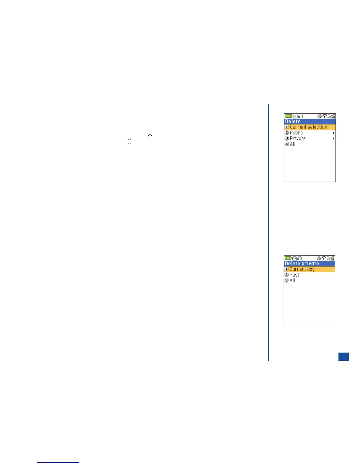 Press MENU (Options Menu),4,and 3 to display the Delete Private menu.
