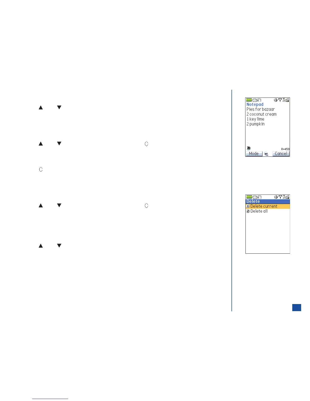 Press Softkey 1 (Yes) to delete all notes in Notepad and a confirmation screen displays, “All entries deleted” or press Softkey
