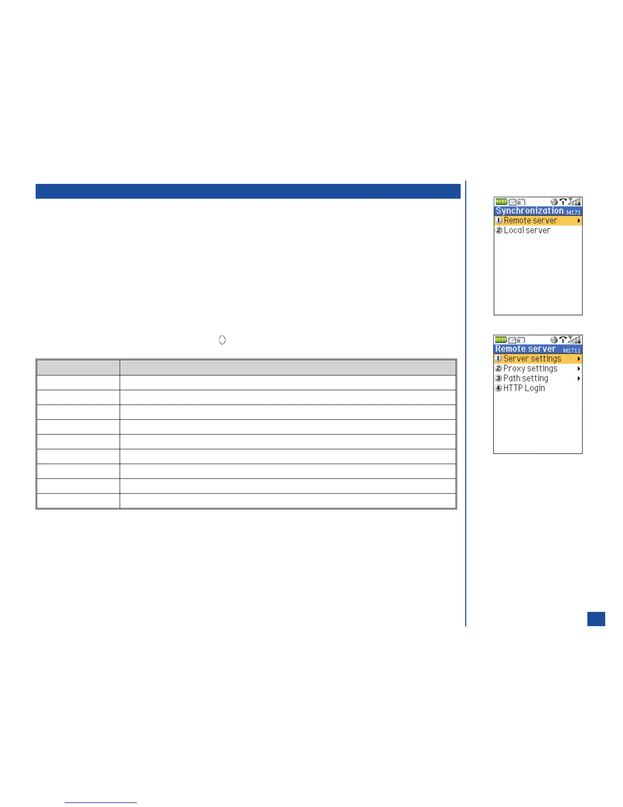 Press MENU (Main),1,7,1,and 1 to display the Remote Server menu.