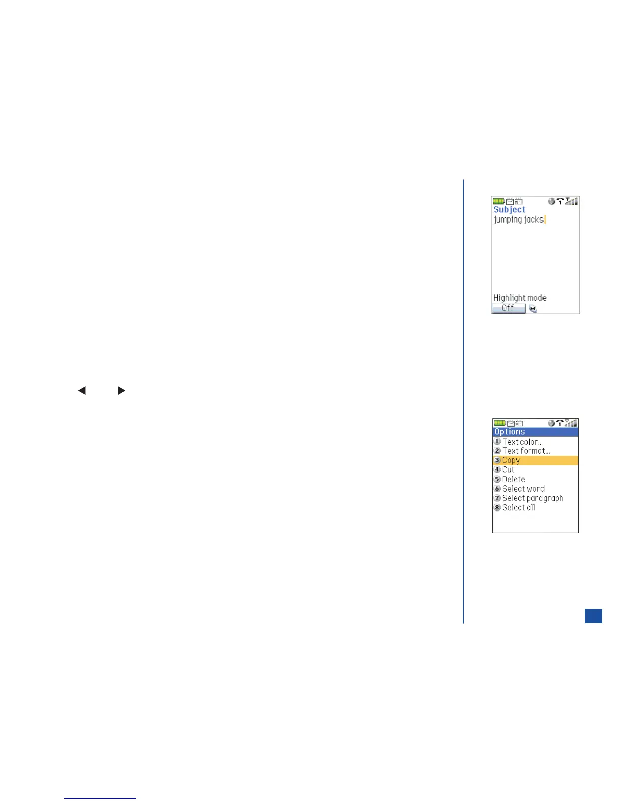 Press (Left) or (Right) navigation key to highlight the word(s) or paragraph(s) or position the cursor.