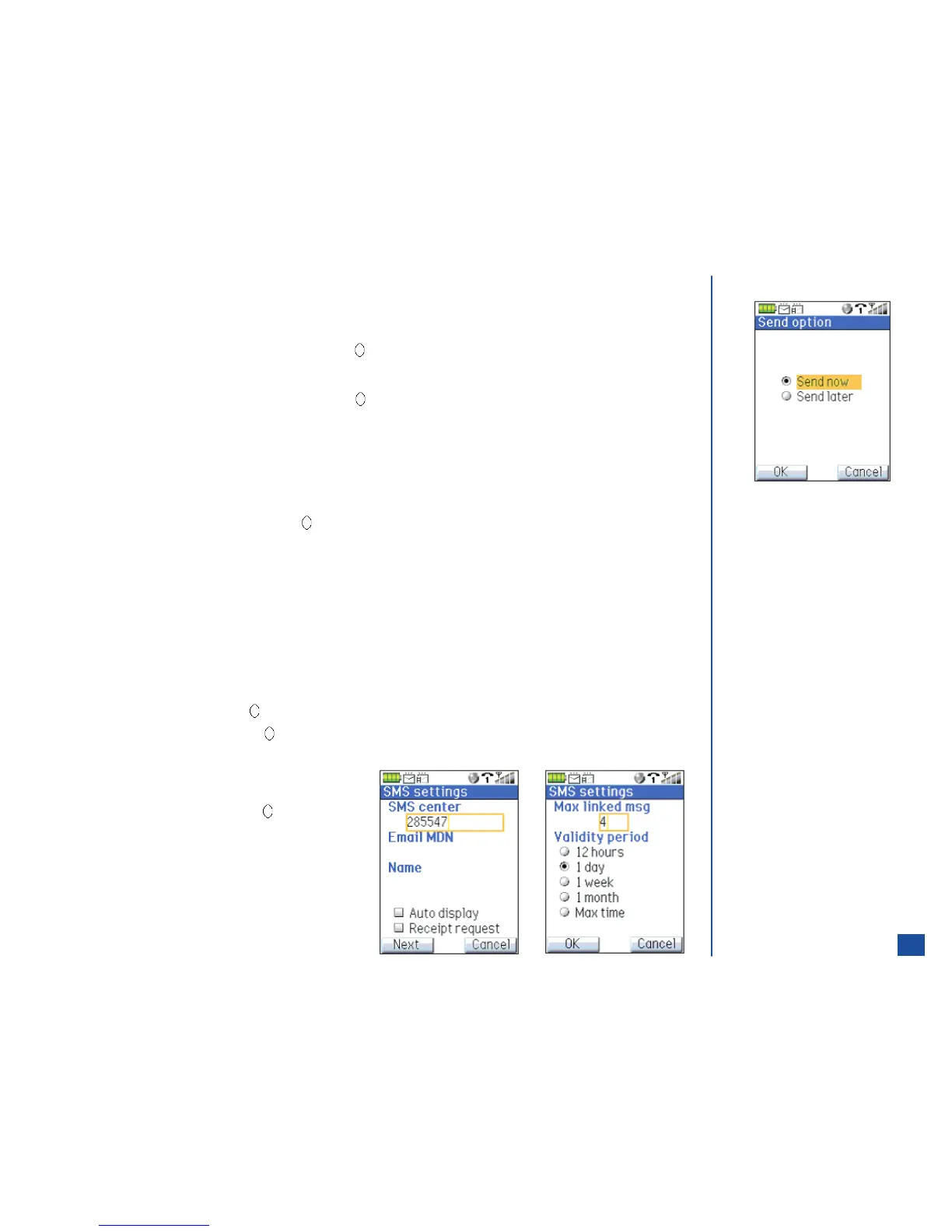 Press Softkey 1 (Next) to display the second SMS settings screen.