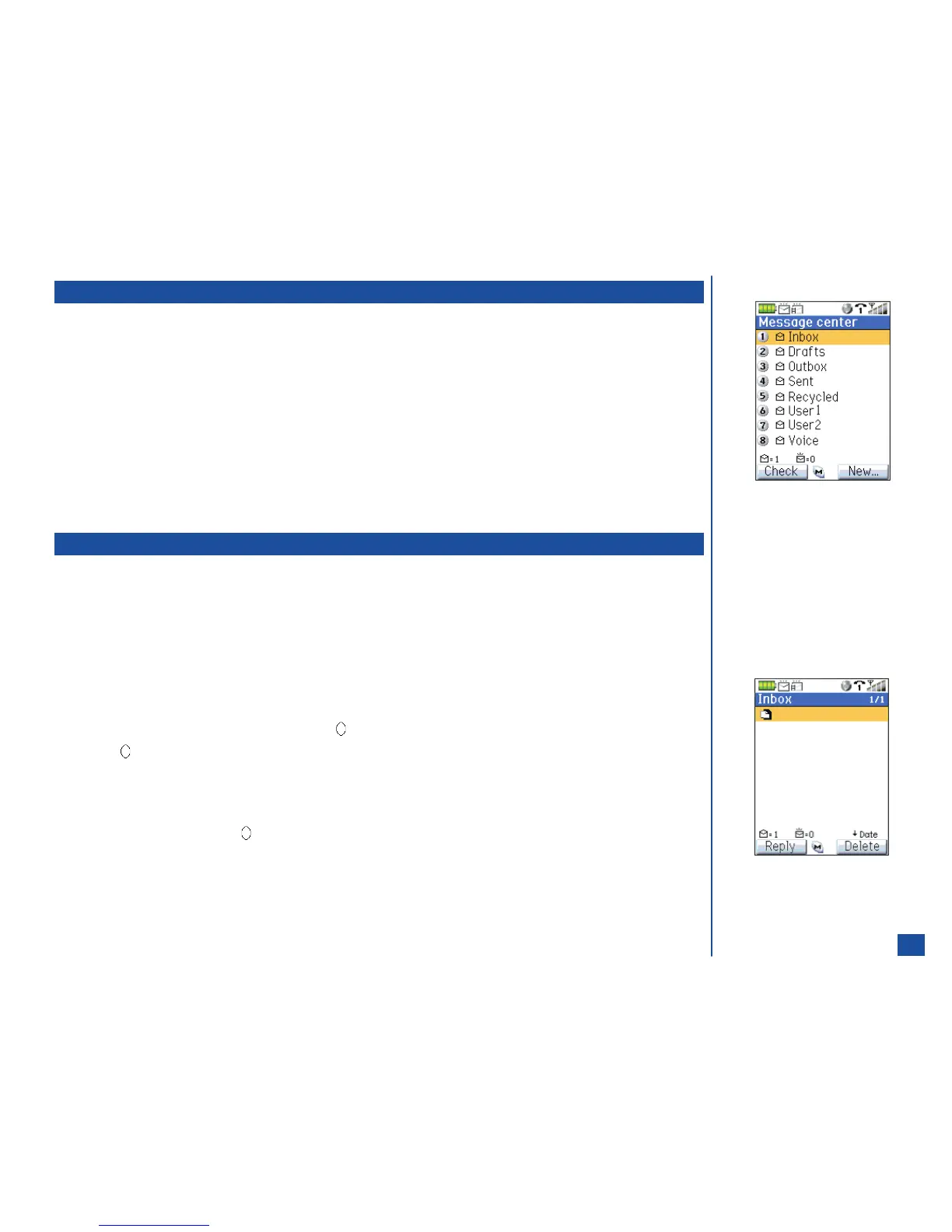 Press Softkey 1 (Message) or MENU (Main) and 2 to display the Message center folder screen.