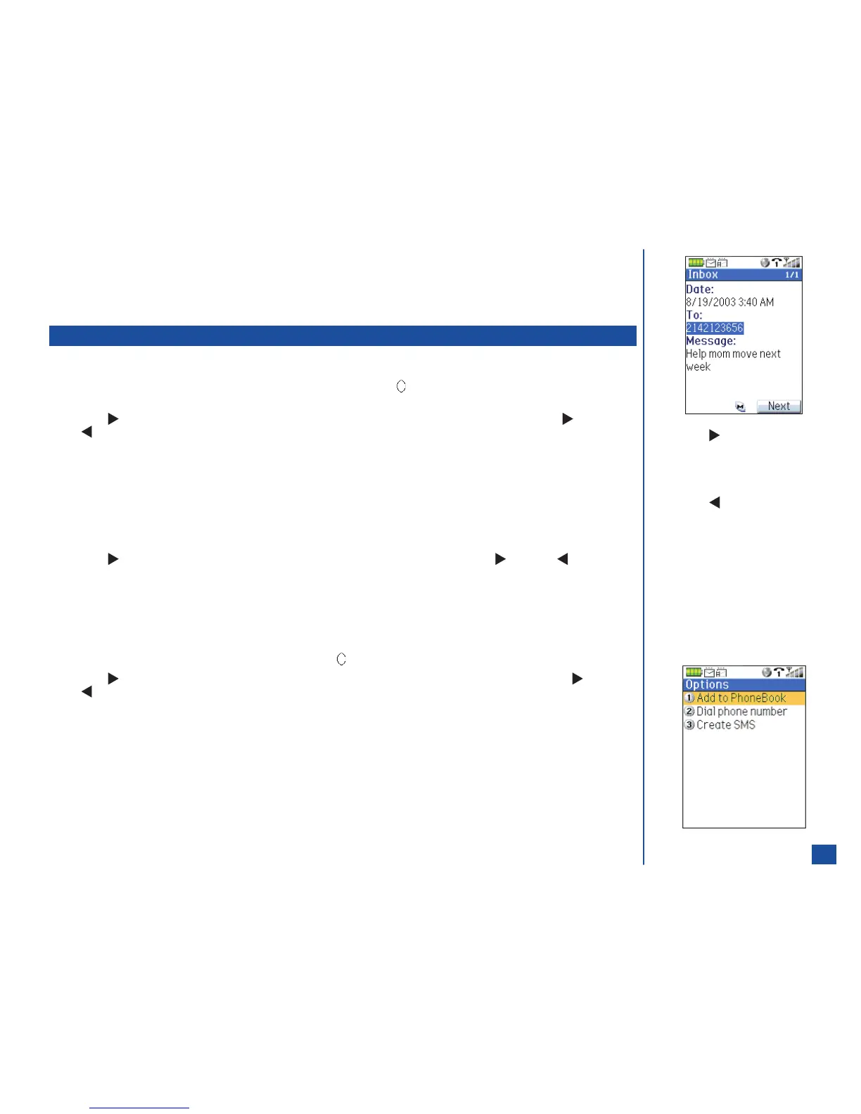 Press MENU (Options Menu) and 3 to display the New SMS screen for a phone number or display the New Email screen for an