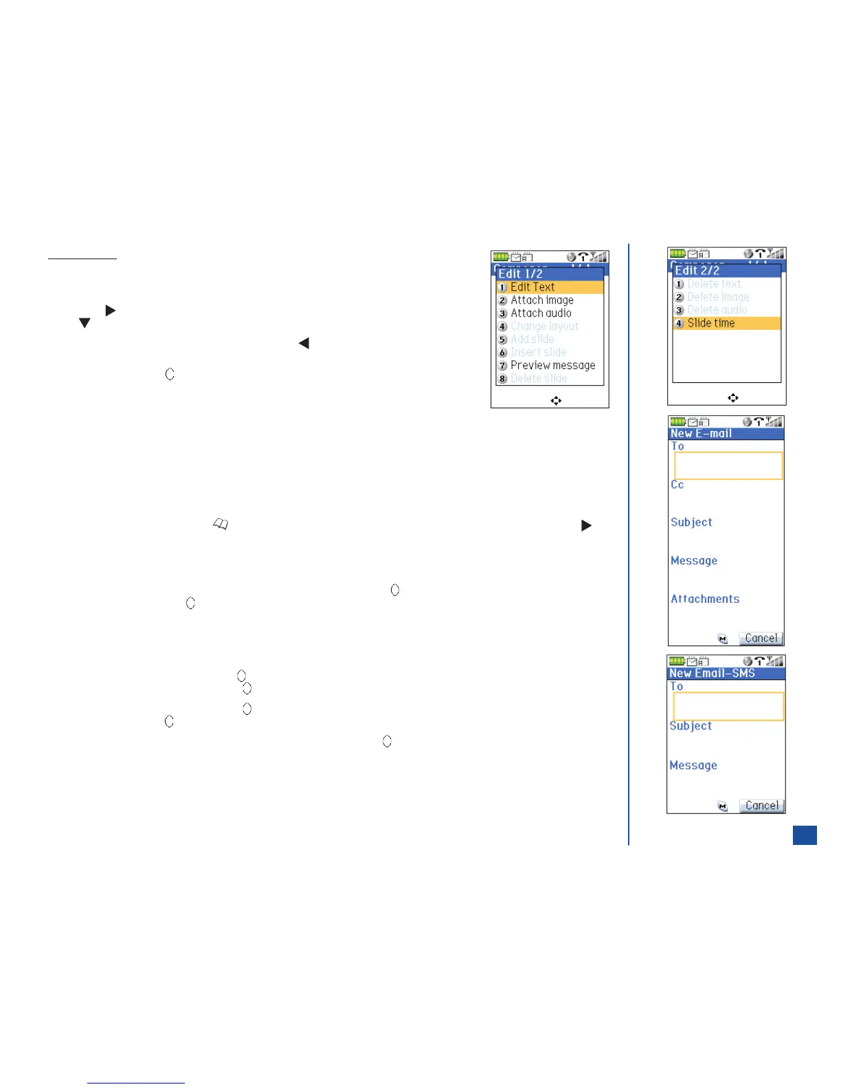 maximum of 90 characters) and press (Select) to return to the Email screen.