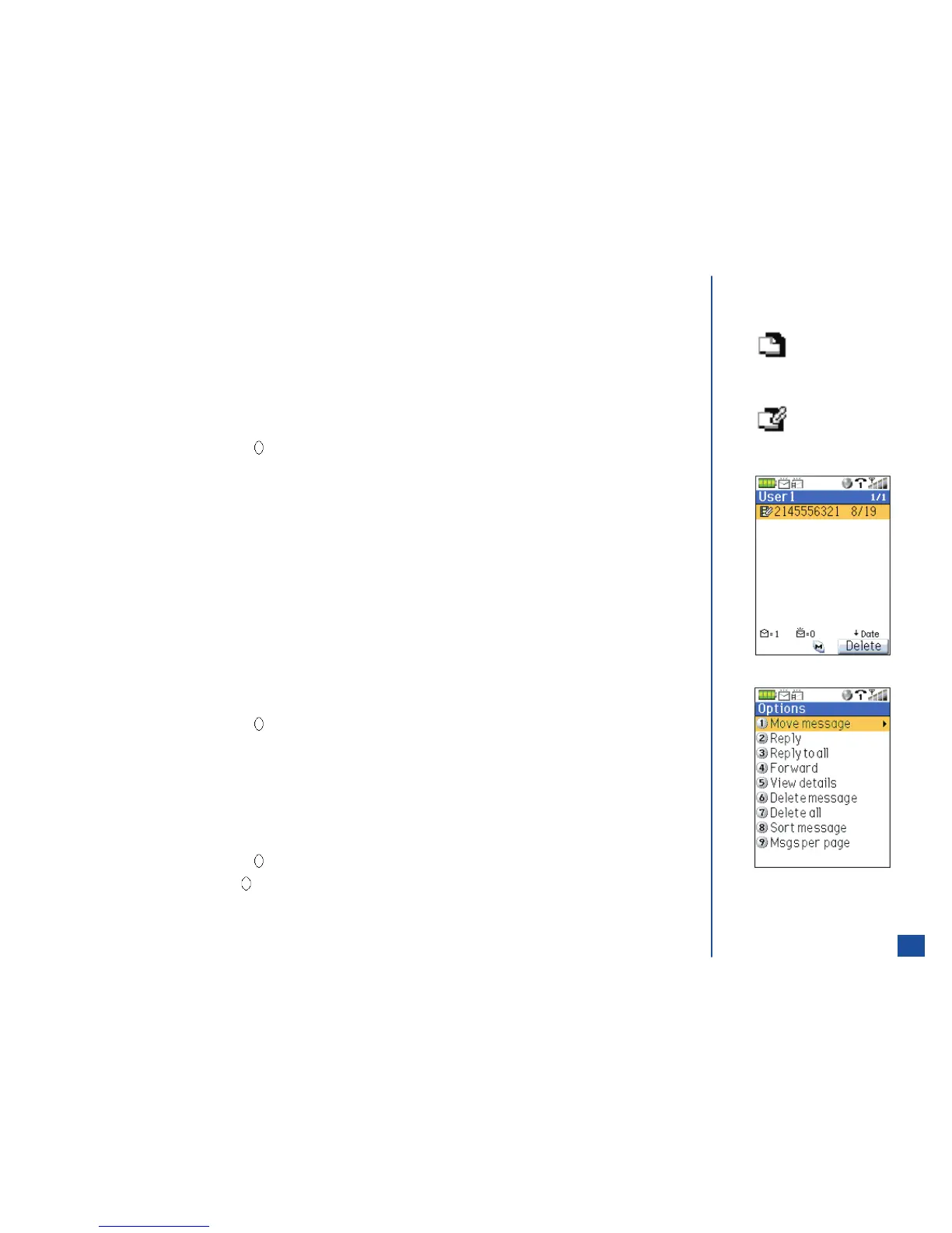 Press Softkey 1 (Yes) to delete the message stored in SIM or Softkey 2 (No) cancel the deletion. When deleting SMS