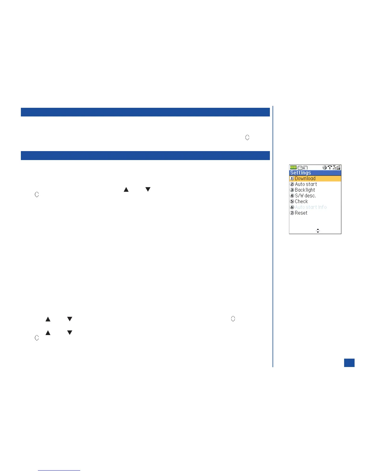 (5) Check settings Displays the summary information of the first four application settings: download, auto start, backlight,