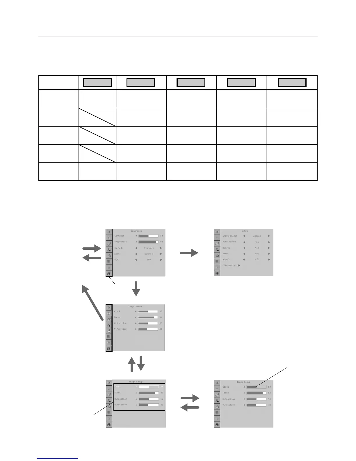 Act Exit-key Cursor moves up Cursor moves down Go to Adjustment stage