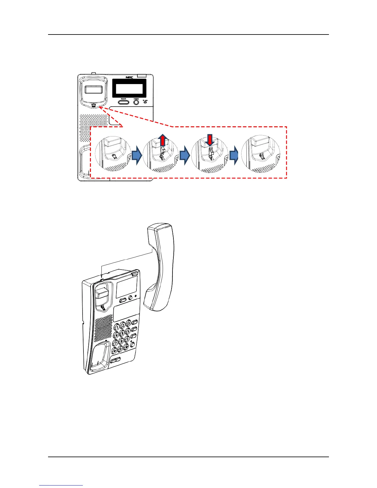 4. Remove the hanger hook from the telephone, and then reverse it and reinsert to the