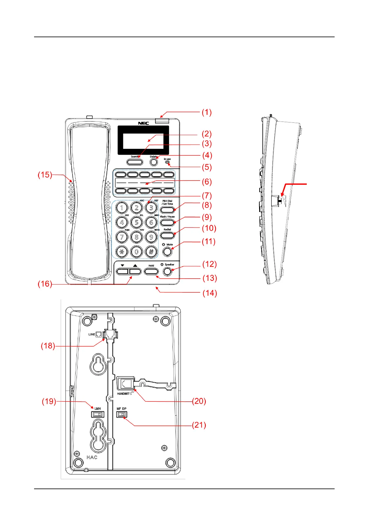 The following figures show the locations of key and parts of telephone.