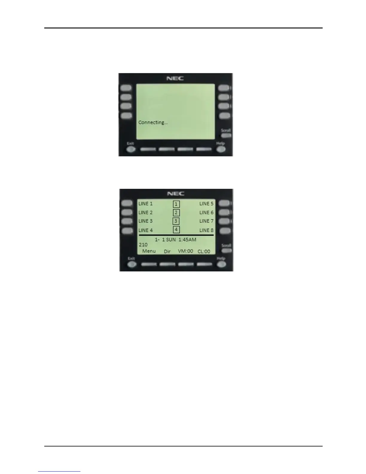 The Connecting… phase is the terminal attempting to register at the SL2100 using the IP address