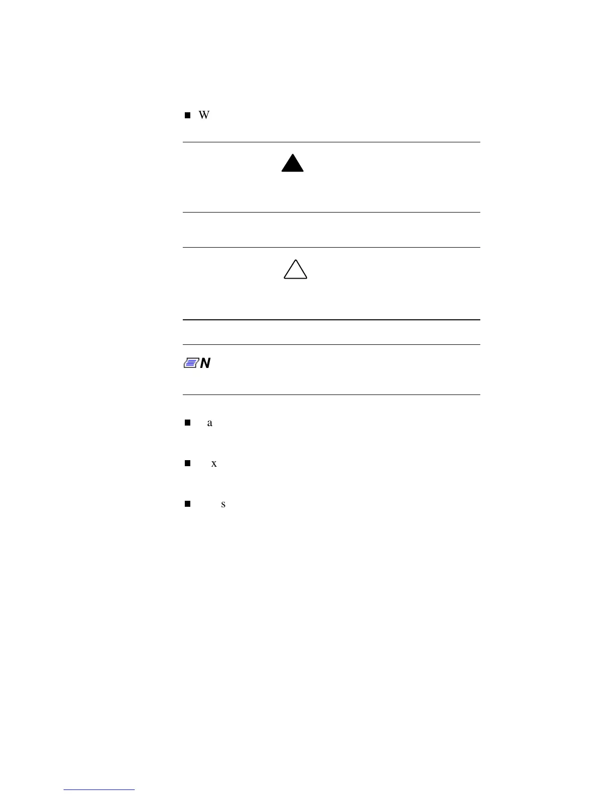 Warnings, cautions, and notes have the following meanings: