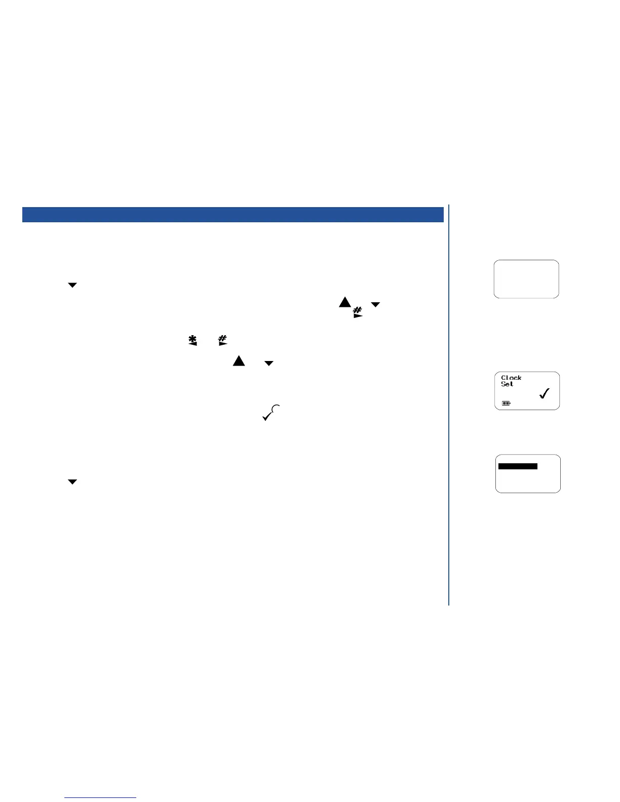When you have set the clock to the required time and date, press the key. The clock set message will be displayed
