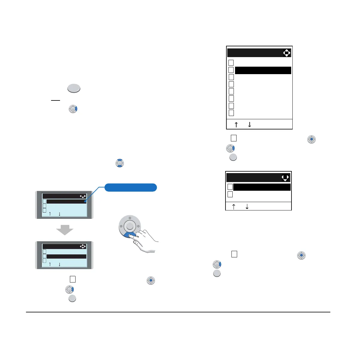 On the Menu screen, use or ↑/↓ soft key to