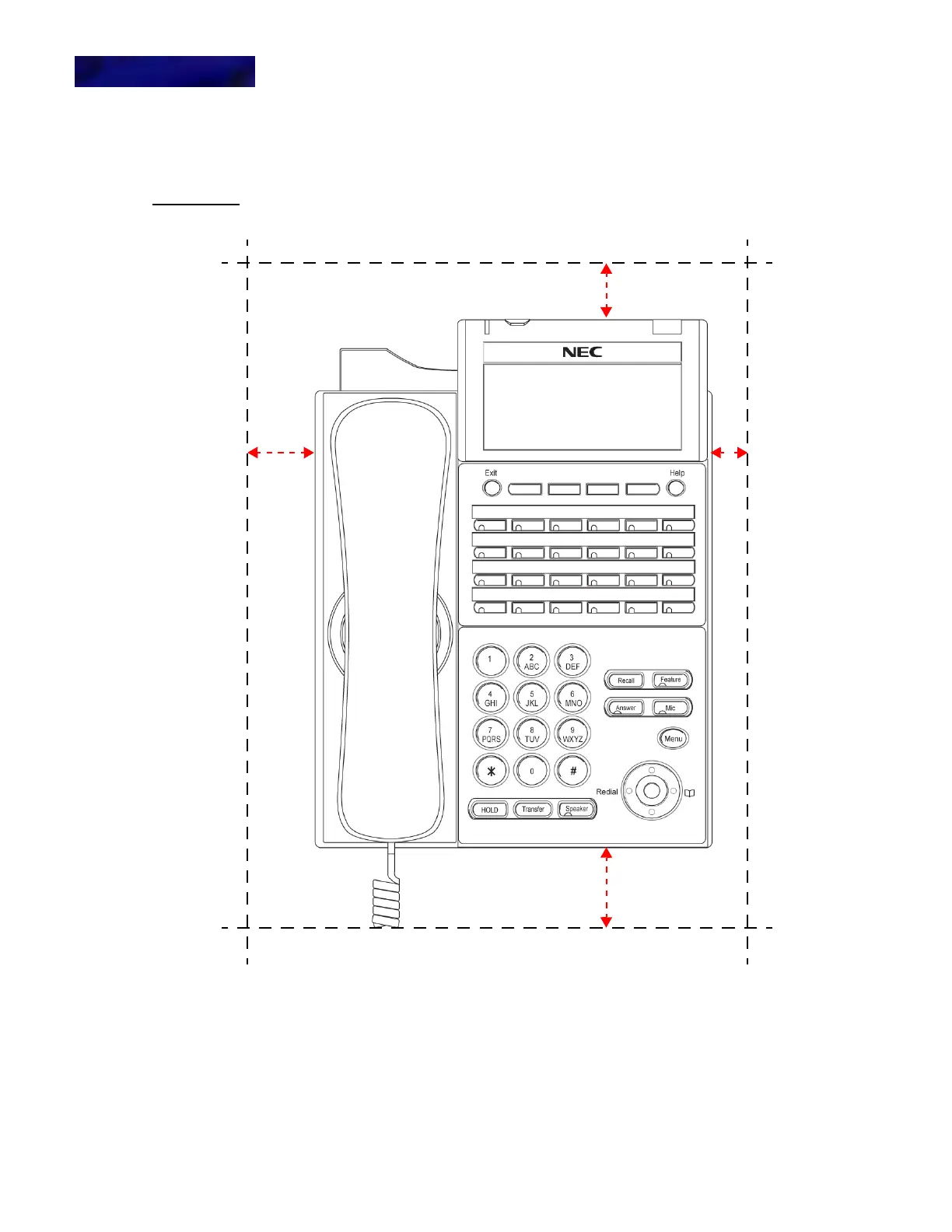 The phone should be mounted to allow for the following clearances for the phone with