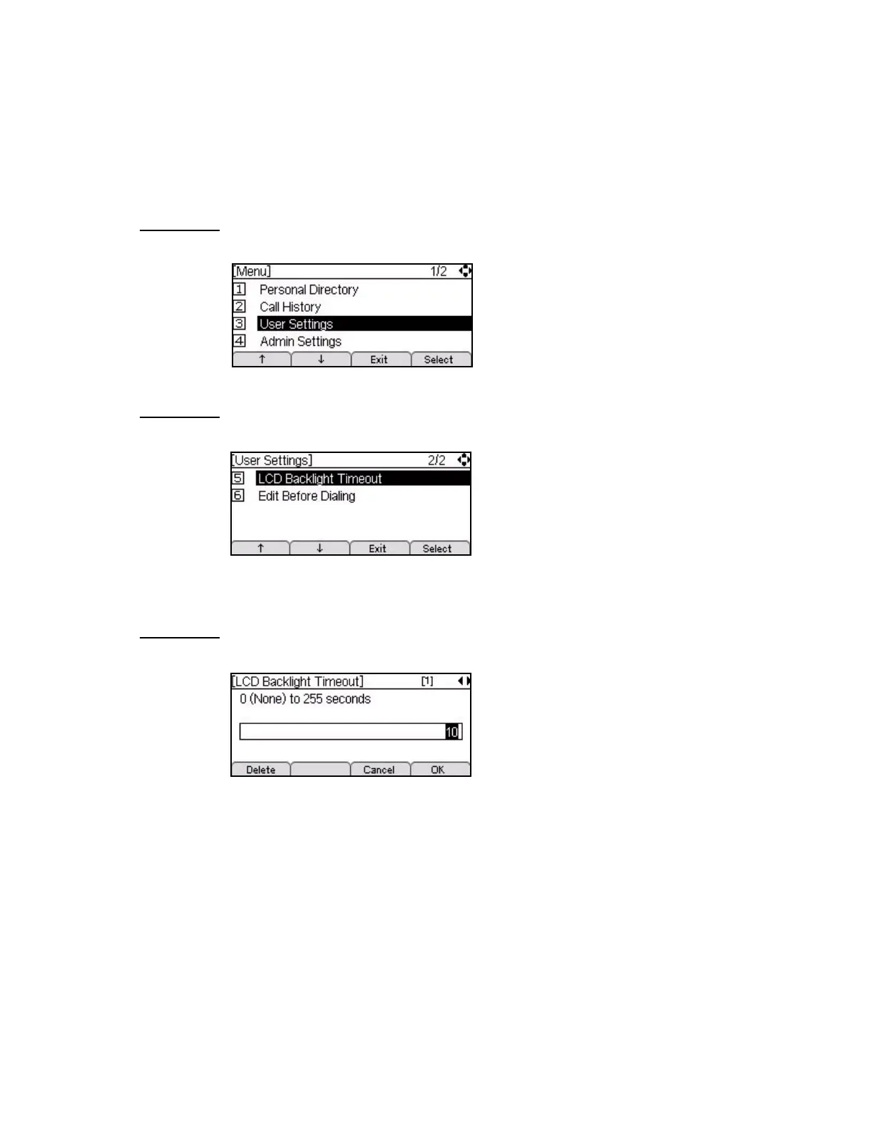 timeout, press the Delete Soft Key and use the telephone keypad to enter new backlight