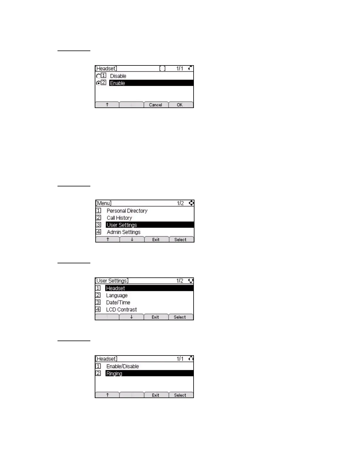 5 To enable headset ringing, select 2 Enable.