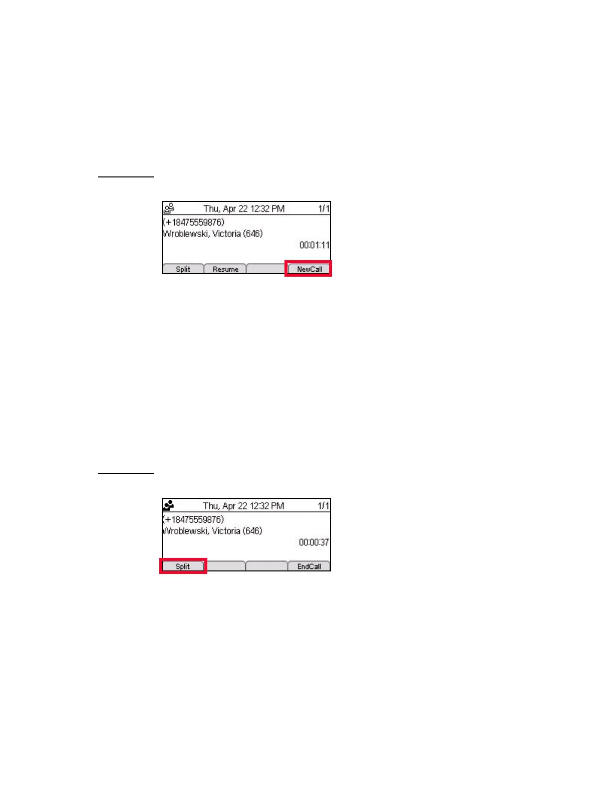 2 Press the Split Soft Key to split the conference into two separate calls.