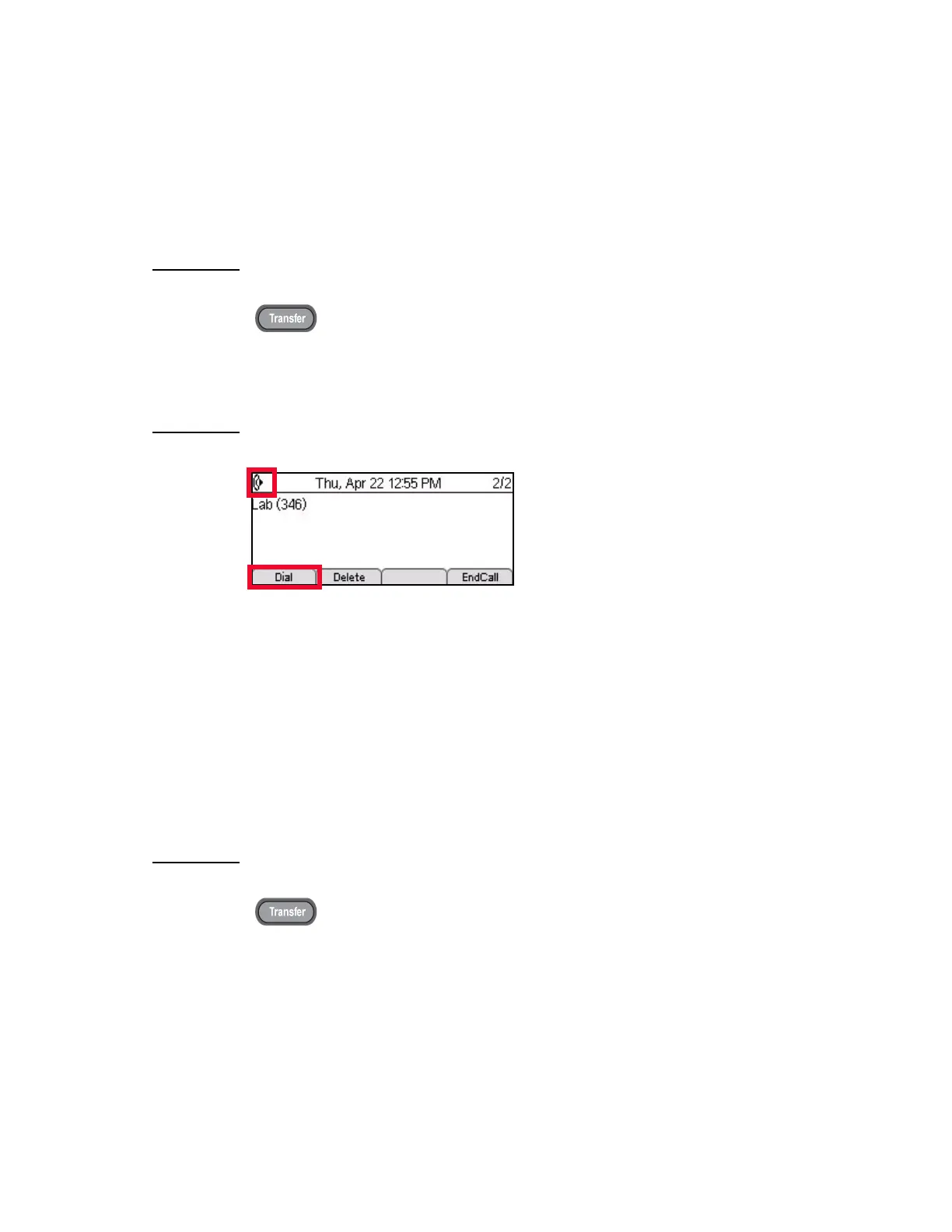 5 Press the Transfer button to transfer the original call to the new party. You will be