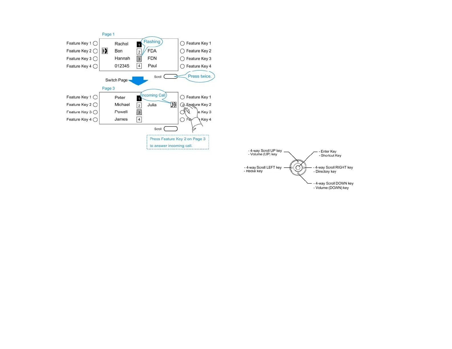 These keys can be programmed as “Speed Dial key” on the