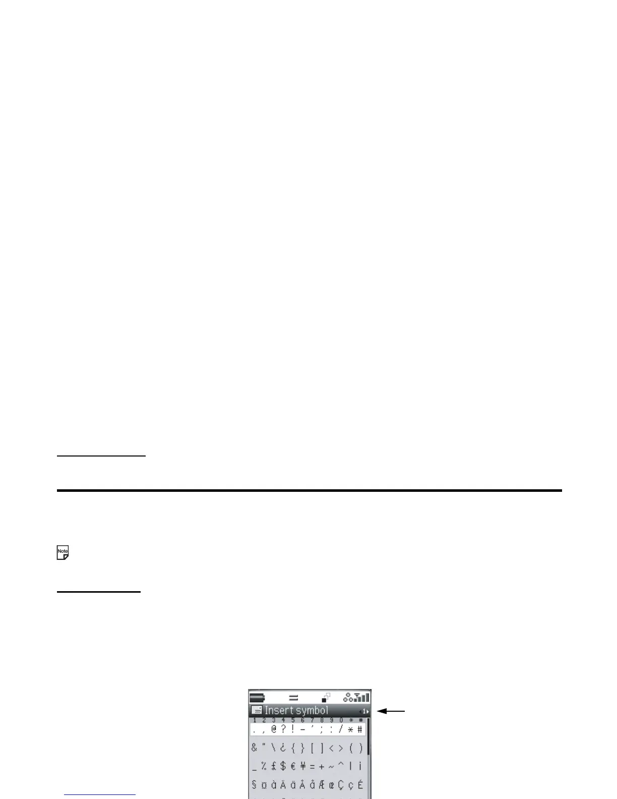 key. Find the keypad character displayed above the symbol and press the key. The temporary symbol menu disappears after