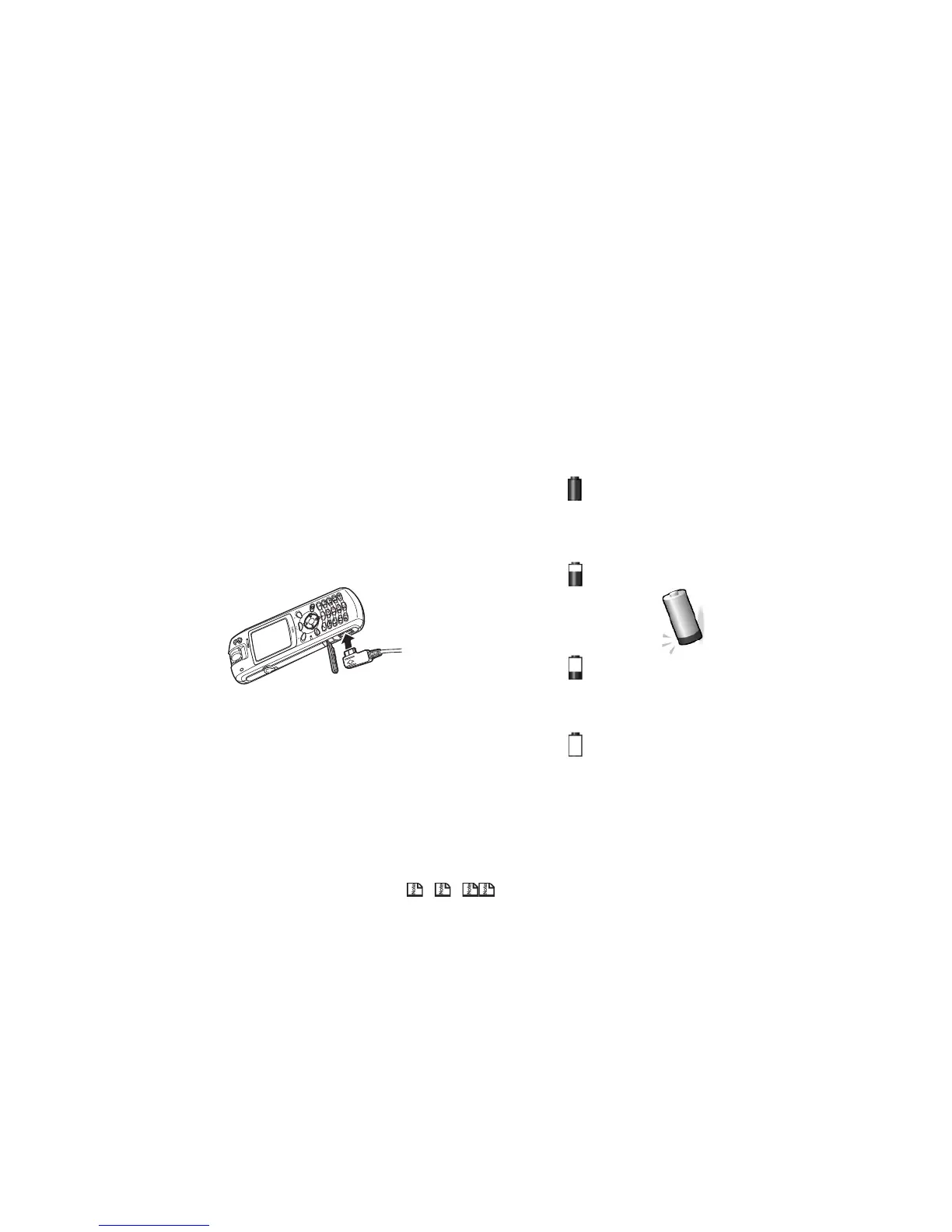 When the battery runs out, the following image will blink and a warning alarm may be heard (depending on the handset