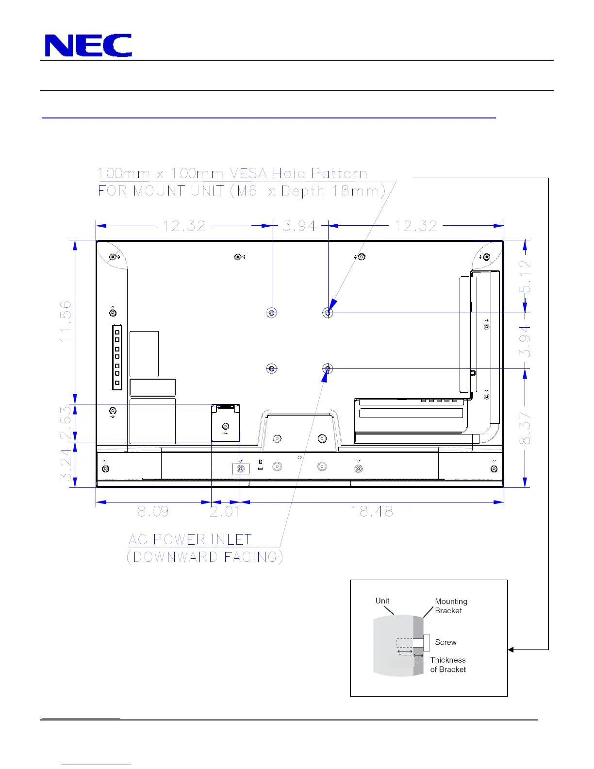NEC E324 - Display Dimensions; Rear