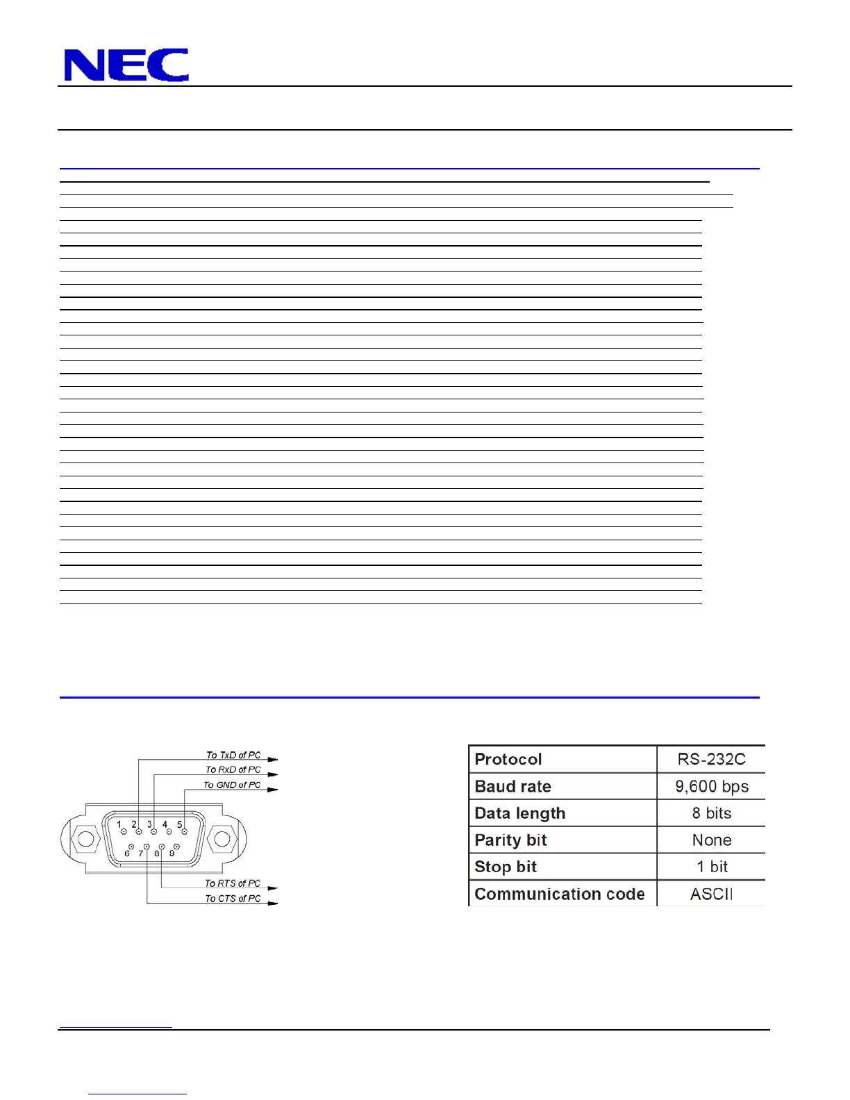 PC Control Connector (D-Sub 9P) Communication Interface