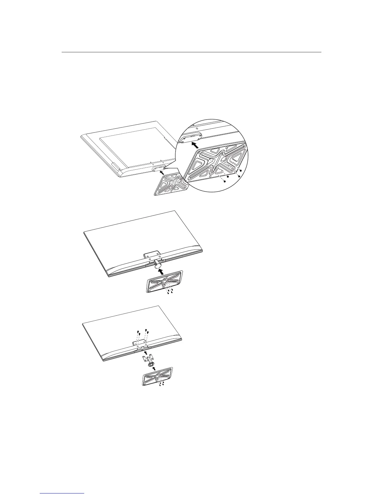 2� Carefully align the base to the stand and fasten the screws with a cross-