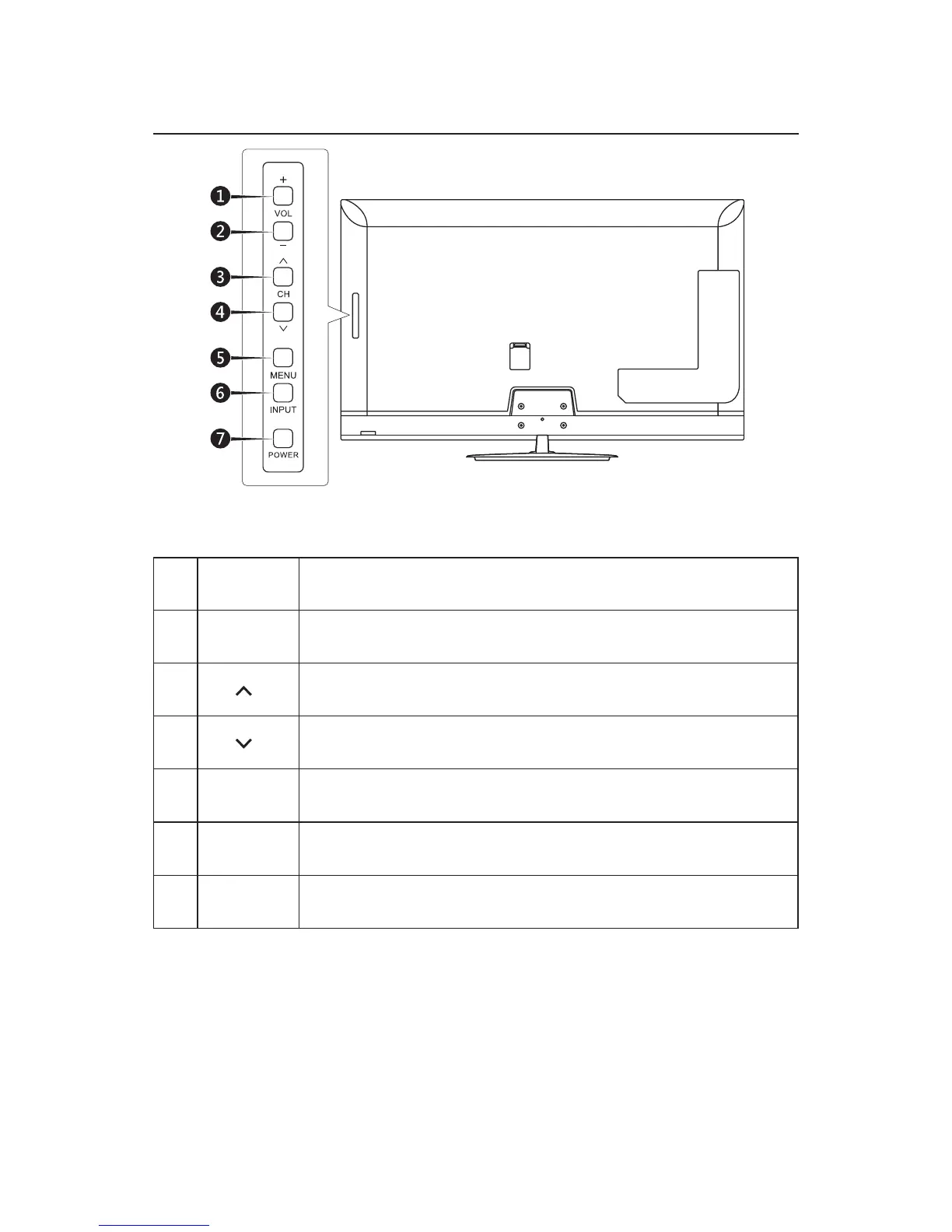Press to turn on / off (standby) the TV