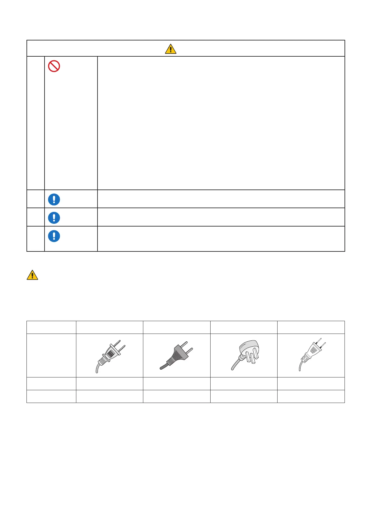 Please use the power cord provided with this display in accordance with the table below. If a power cord is not