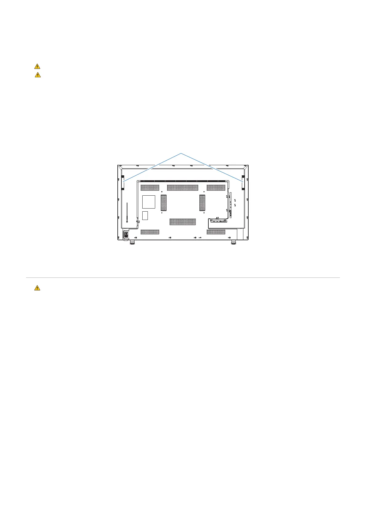 When installing the monitor to a wall or a ceiling, use commercially-available wall or ceiling mounting brackets, but also a safety