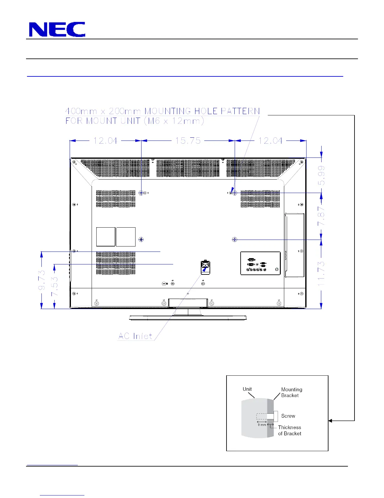 NEC E422 - Mounting Hole Pattern