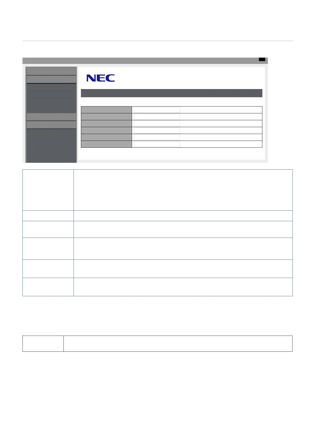 DEFAULT GATEWAY Set the default gateway for the network to which the monitor is connected when [Off] is selected for