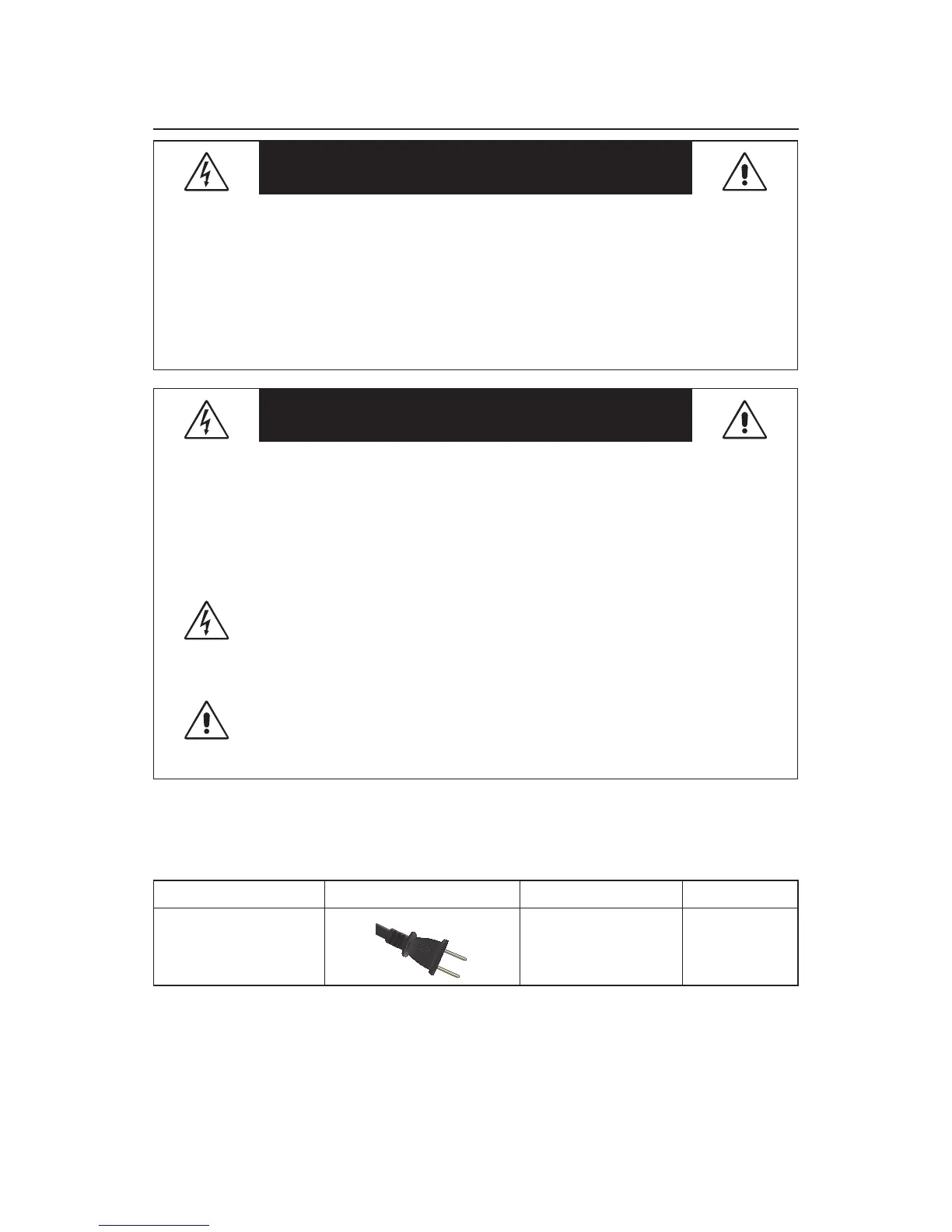 the table below� If a power cord is not supplied with this equipment, please contact your