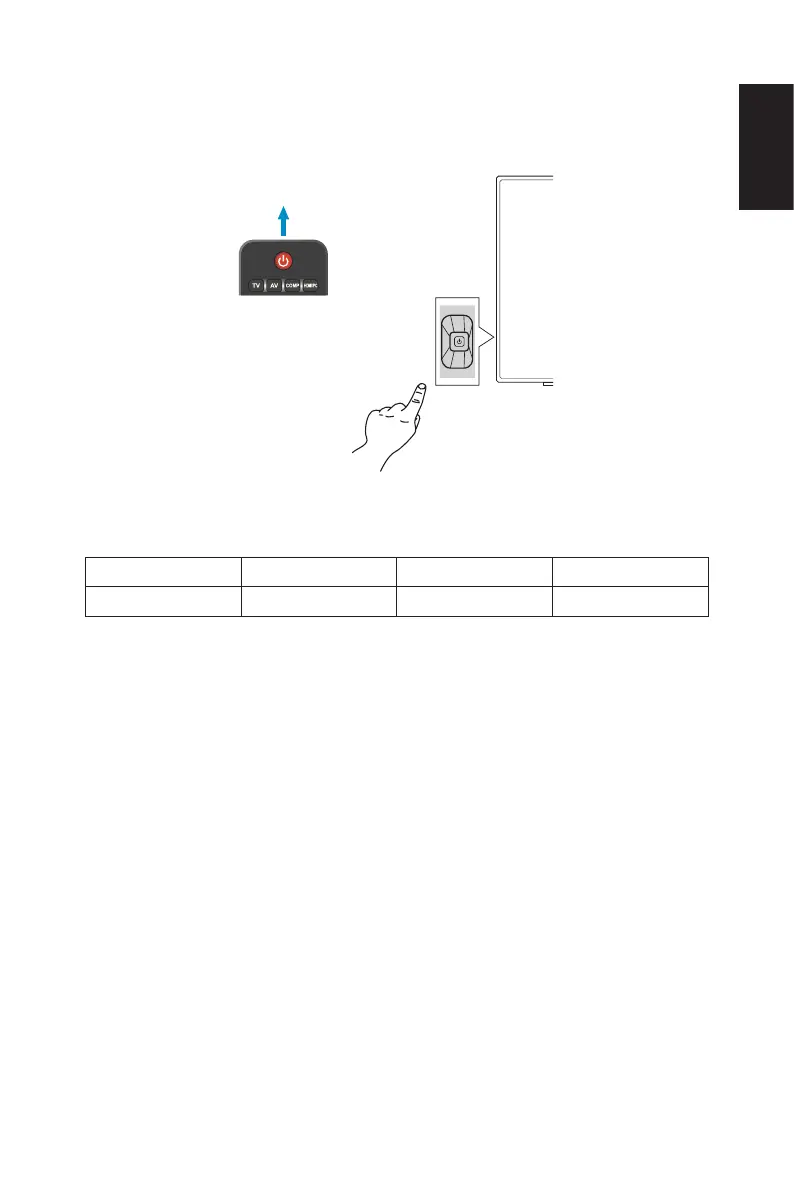 Press the power button on the remote control or press the power button