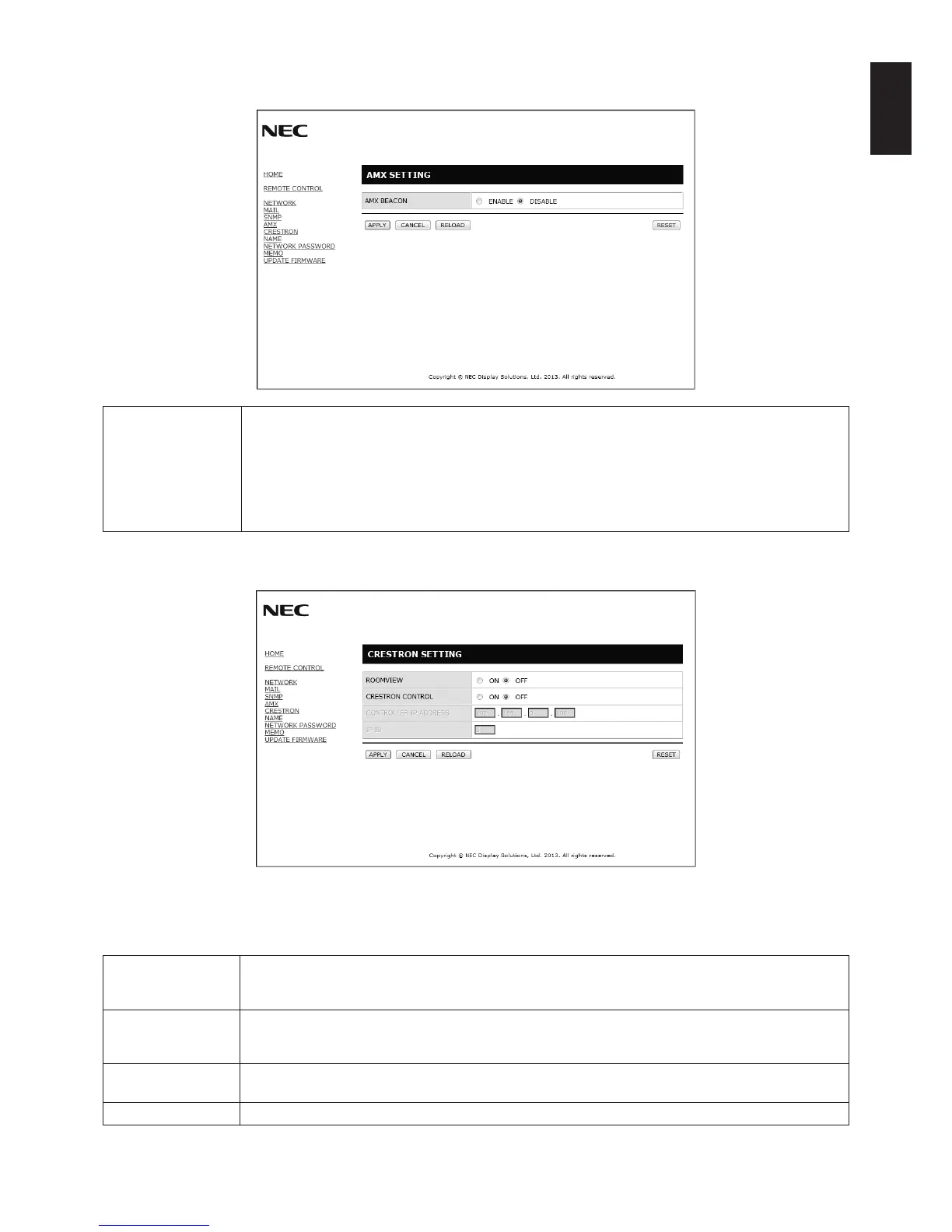 TIP: The CRESTRON settings are required only for use with CRESTRON ROOMVIEW.