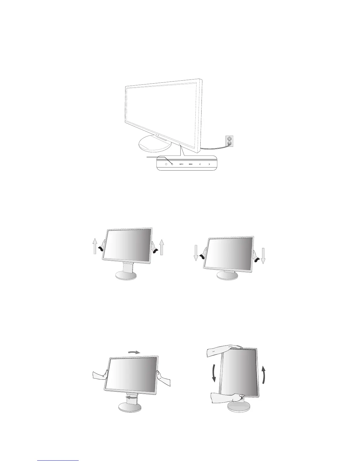 To rotate screen, place a hand on each side of the monitor screen and turn clockwise from landscape to portrait or counter-