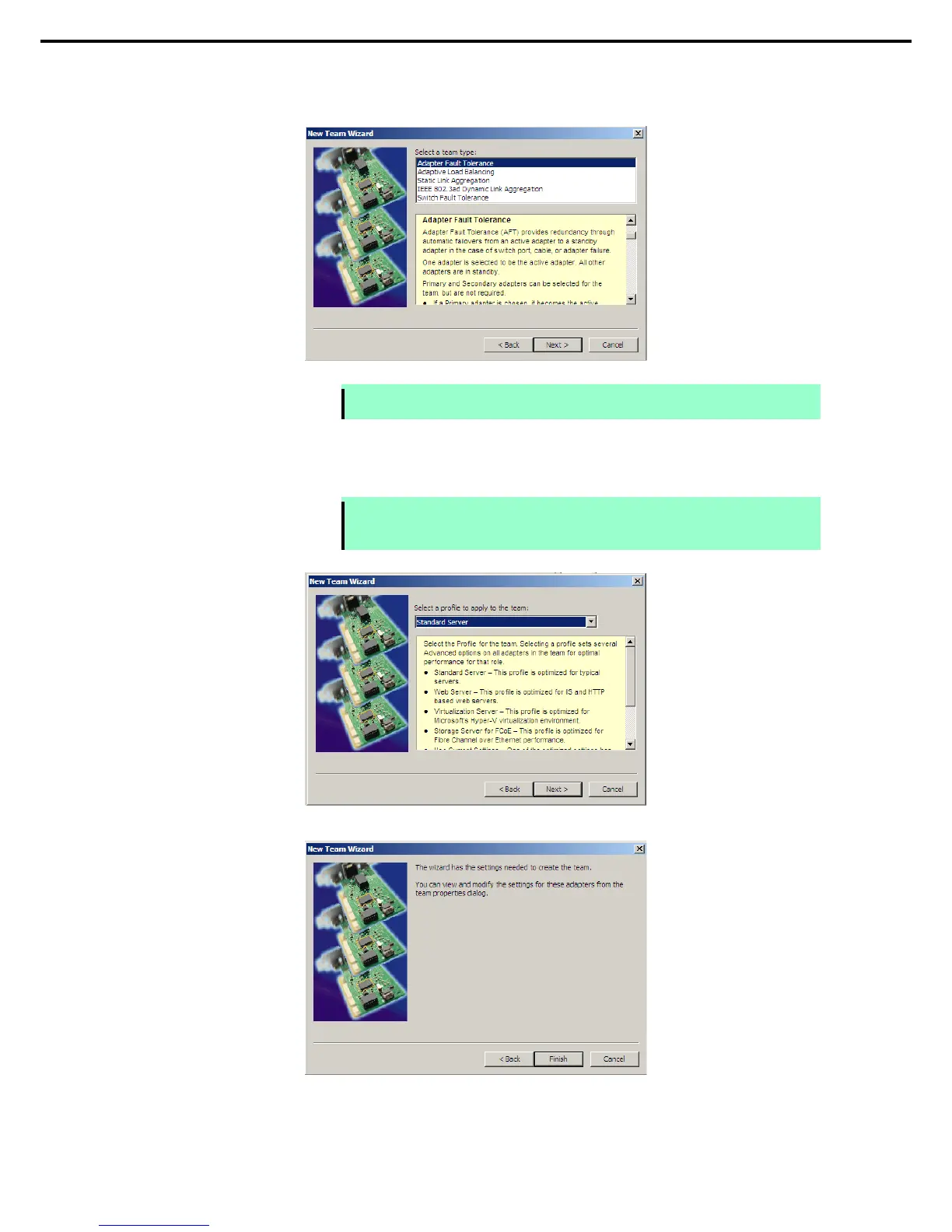 6. Select Adapter Fault Tolerance, Adaptive Load Balancing, or Switch Fault Tolerance as a team