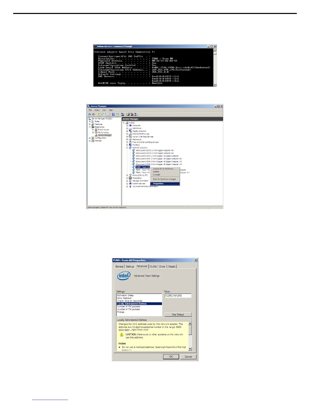 11. Set the MAC address for Team Adapter as follows: