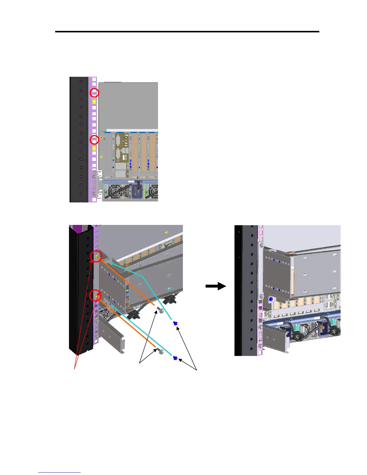 23.Attach the cable arm to the slide rail assembly through square holes by using three screws.