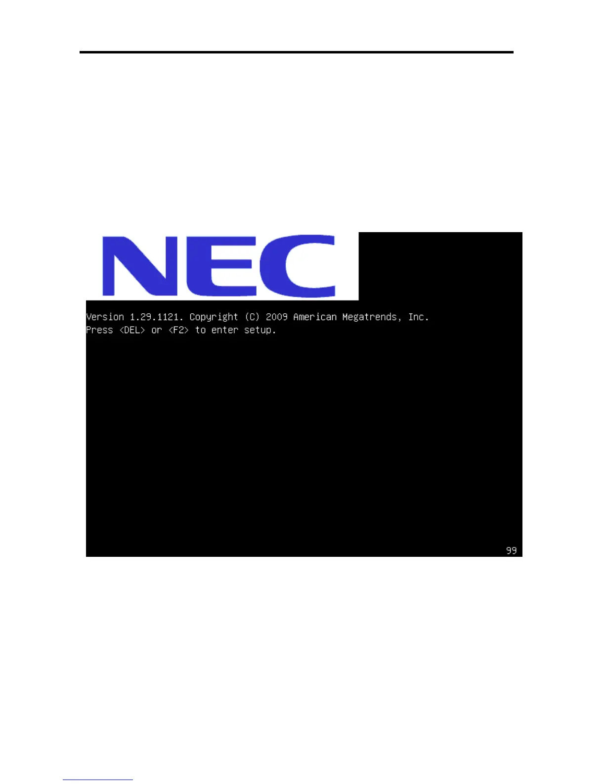 2. When the following screen (NEC logo and “Press <DEL> or <F2> to enter setup”) is