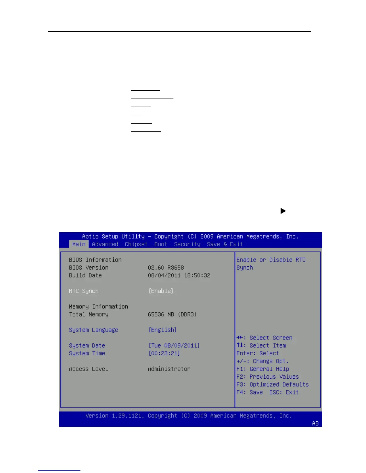 The Main menu is displayed first when starting SETUP. For the menu with “ ” at the