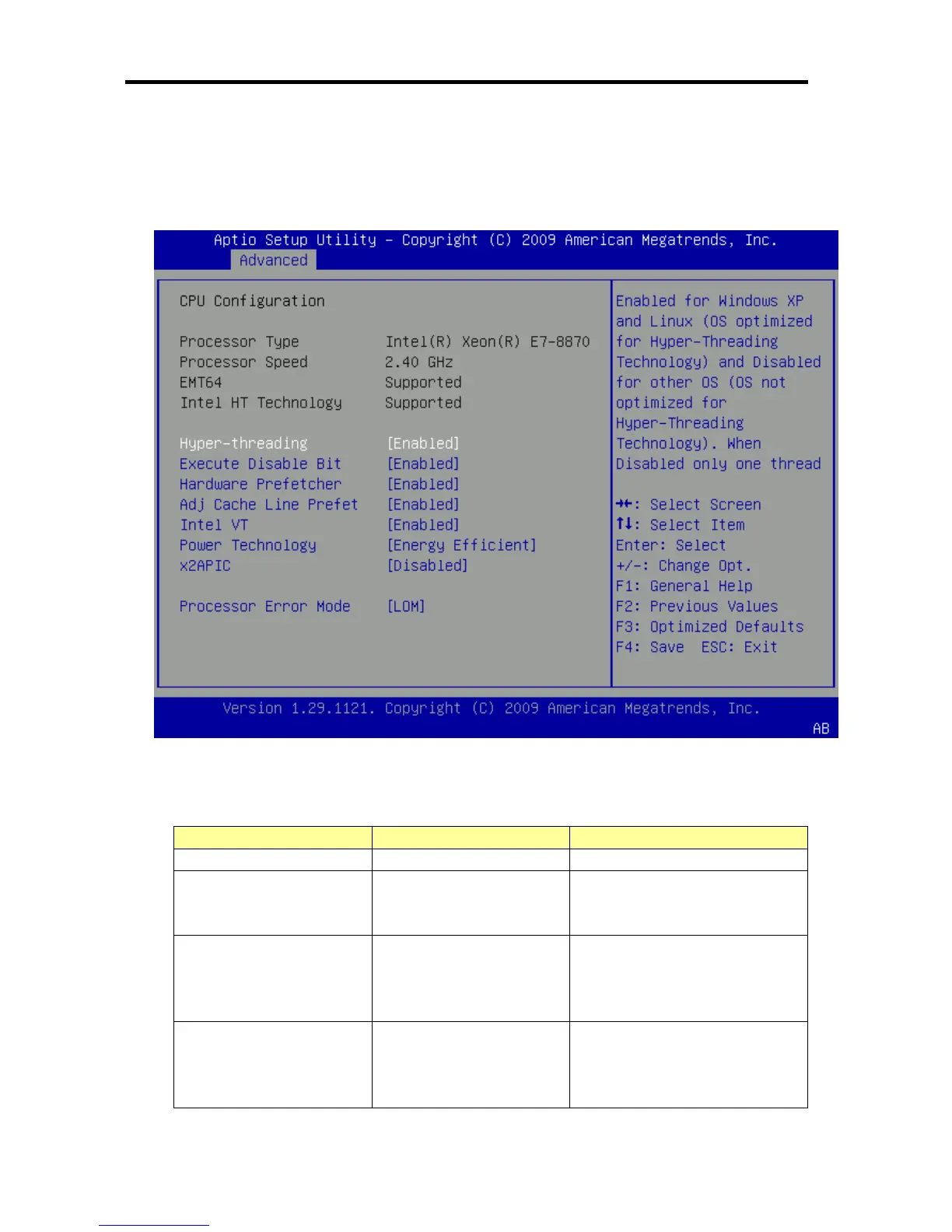 The following screen is displayed by selecting “CPU Configuration” in Advanced Menu.