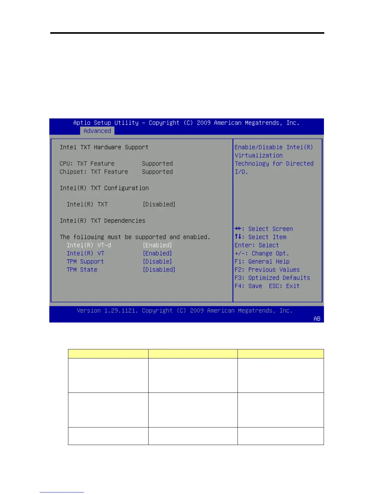 The following screen is displayed by selecting “Intel(R) TXT Configuration” in Advanced