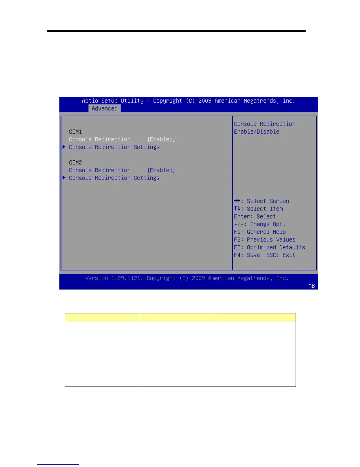 The following screen is displayed by selecting “Serial Port Console Redirection” in the