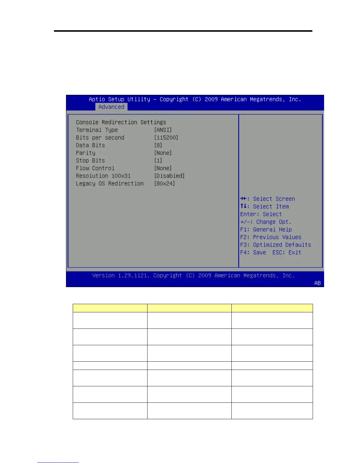 Console Redirection Menu.