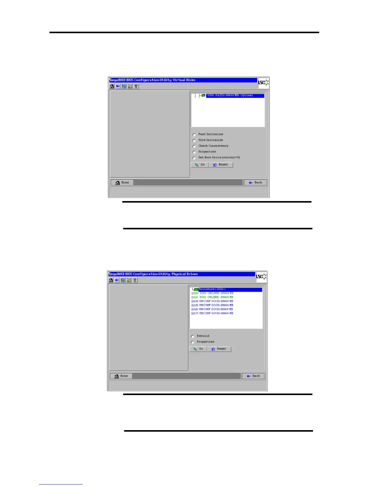 When you select [Virtual Disks] on WebBIOS Home Menu and press Enter, the screen for