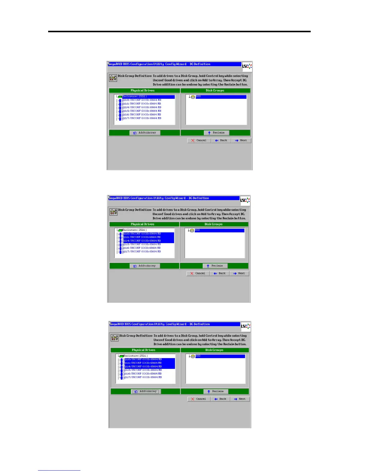 Select Physical Drives (hard disk drives) you want to add to a disk group using the up and down