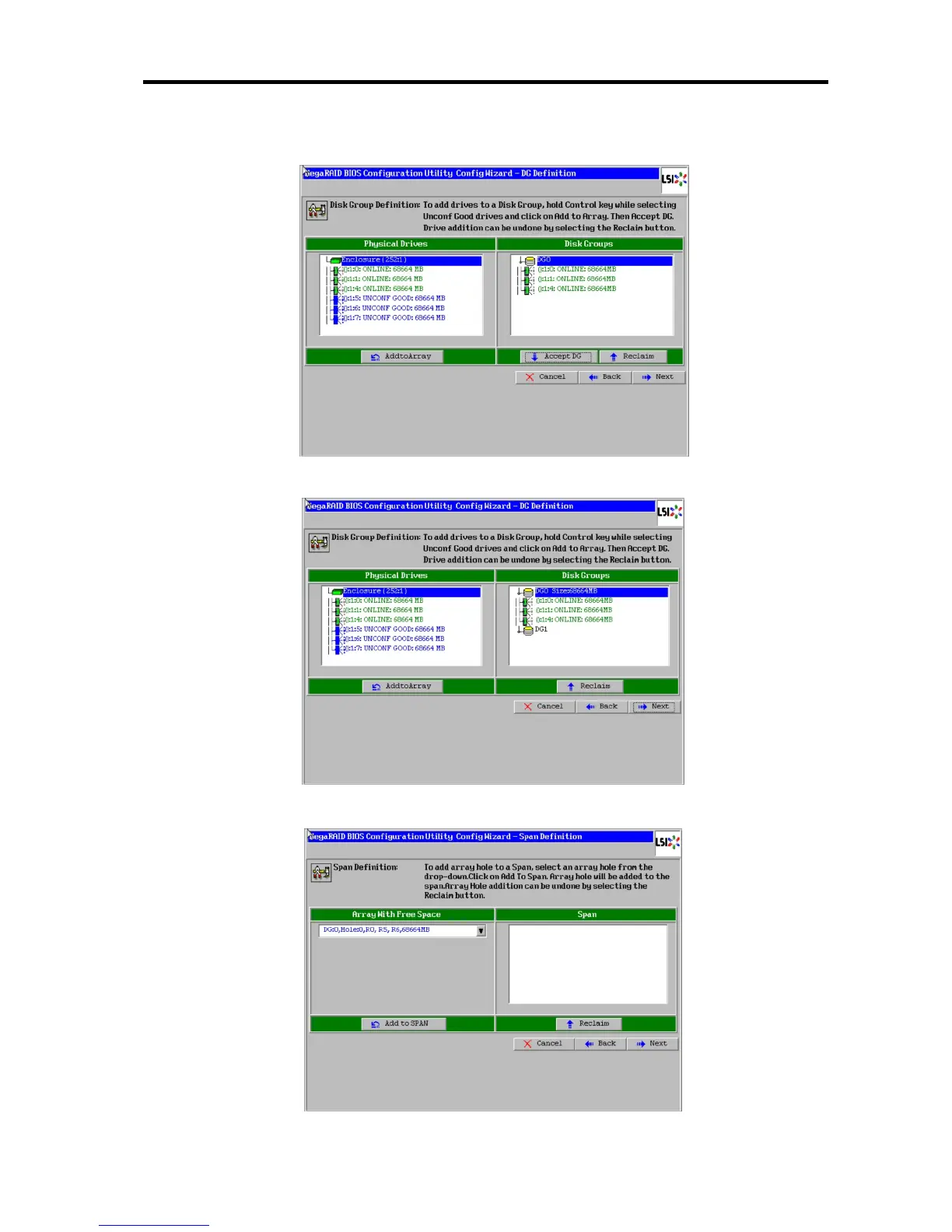 After the DG has been defined, select [Next] at the lower right of the screen, and press Enter.
